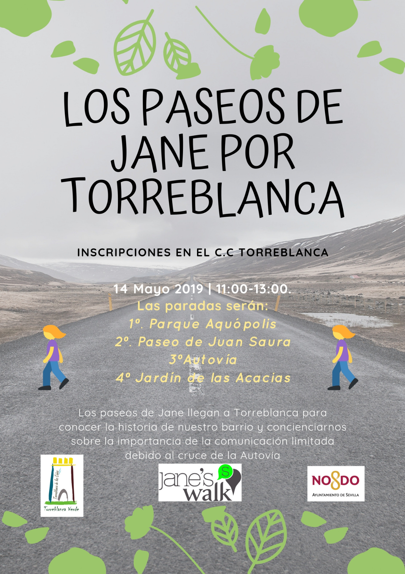 El recorrido incluye el cruce de la autovía, donde se realiza una acción reivindicativa para mejorar la conexión del barrio y reducir la contaminación. Finalmente, el paseo llega al Jardín de las Acacias, donde se pone en valor el trabajo conjunto de entidades y vecinos, y concluye con un espacio de convivencia.